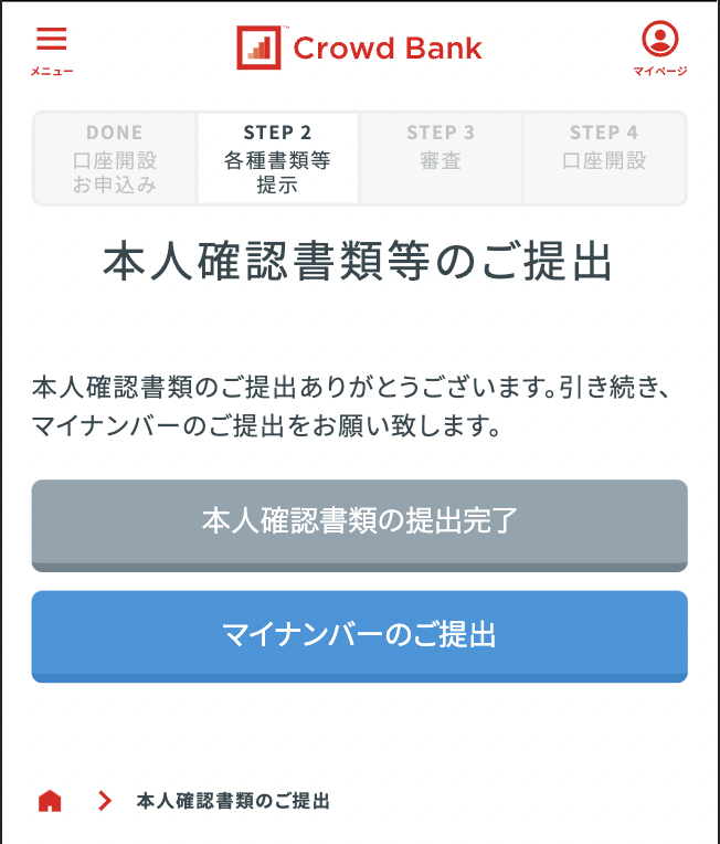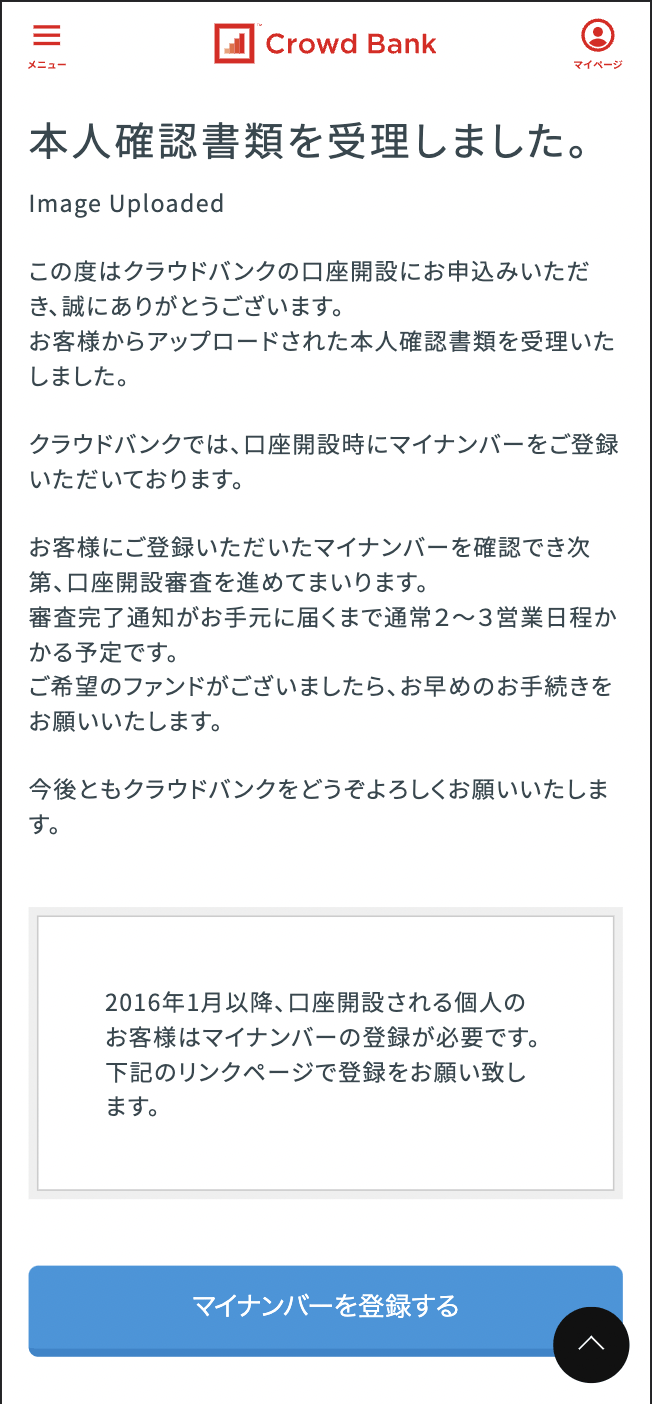 6.本人確認書類がアップロードできたら、マイナンバーカードも合わせてアップロードすれば完了です