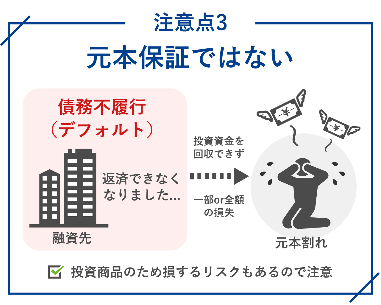 「ソーシャルレンディングはなぜリスクが低いか」という疑問には、「損をする要因が限られているから」と回答できます。