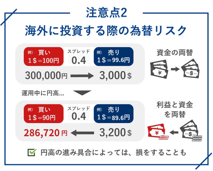 日本から海外のファンドに投資できるのは非常に魅力的である一方、必ず為替コストや為替リスクがつきまといます。