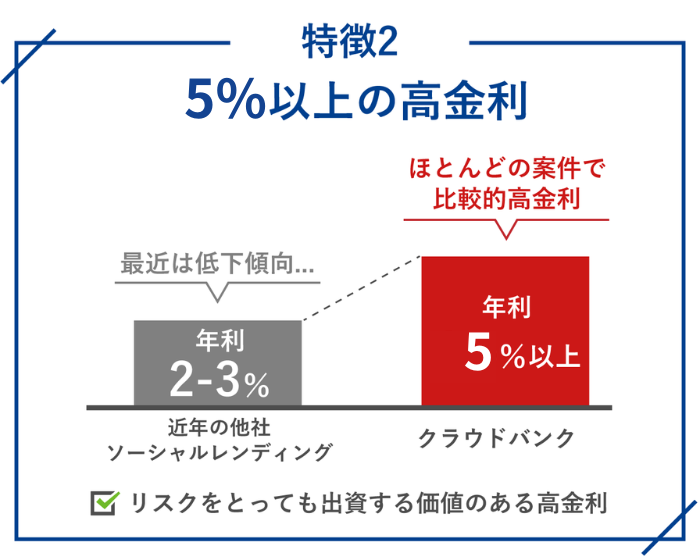 クラウドバンクのメリット・特徴2. 5%以上の高金利