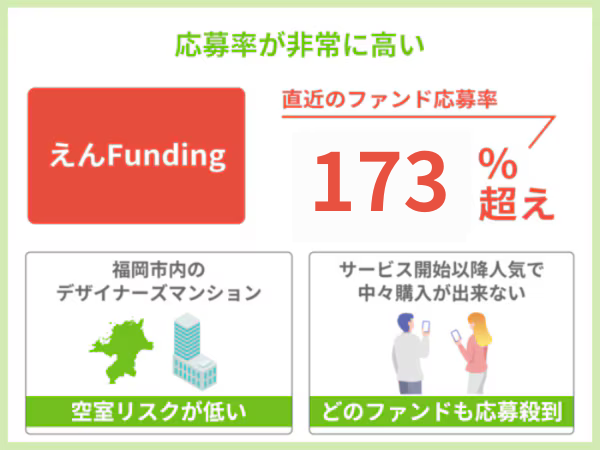 えんfundingの直近5件のファンドの応募率は約173%となっています。