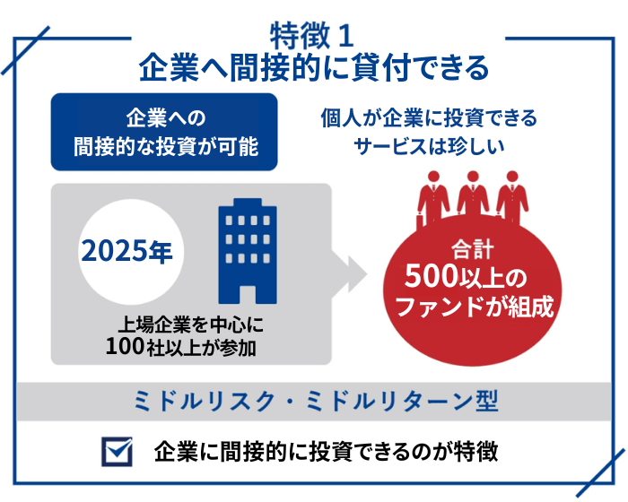 Funds(ファンズ)のメリット・特徴1.企業へ間接的に貸付ができる