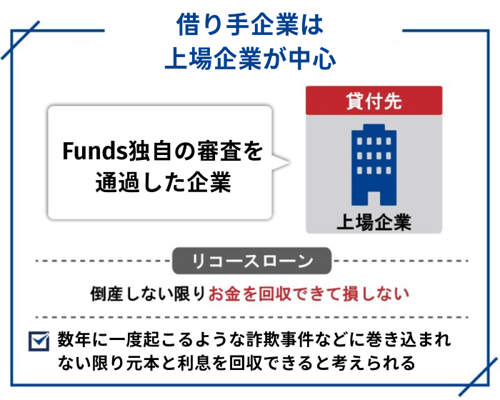 Fundsでは借り手企業が上場企業である場合が多く、リコースローンならば返済不能にならない限りお金を回収できて損しないわけです。
