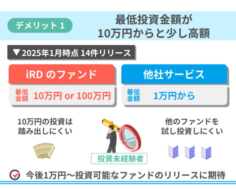 iRDの注意点・デメリット1.最低投資金額が10万円からと少し高額