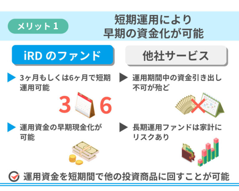 iRDの特徴・メリット1.短期運用により早期の資金化が可能