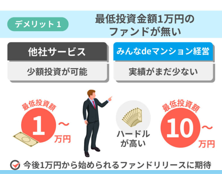 みんなdeマンション経営の注意点・デメリット1.最低投資金額1万円のファンドが無い