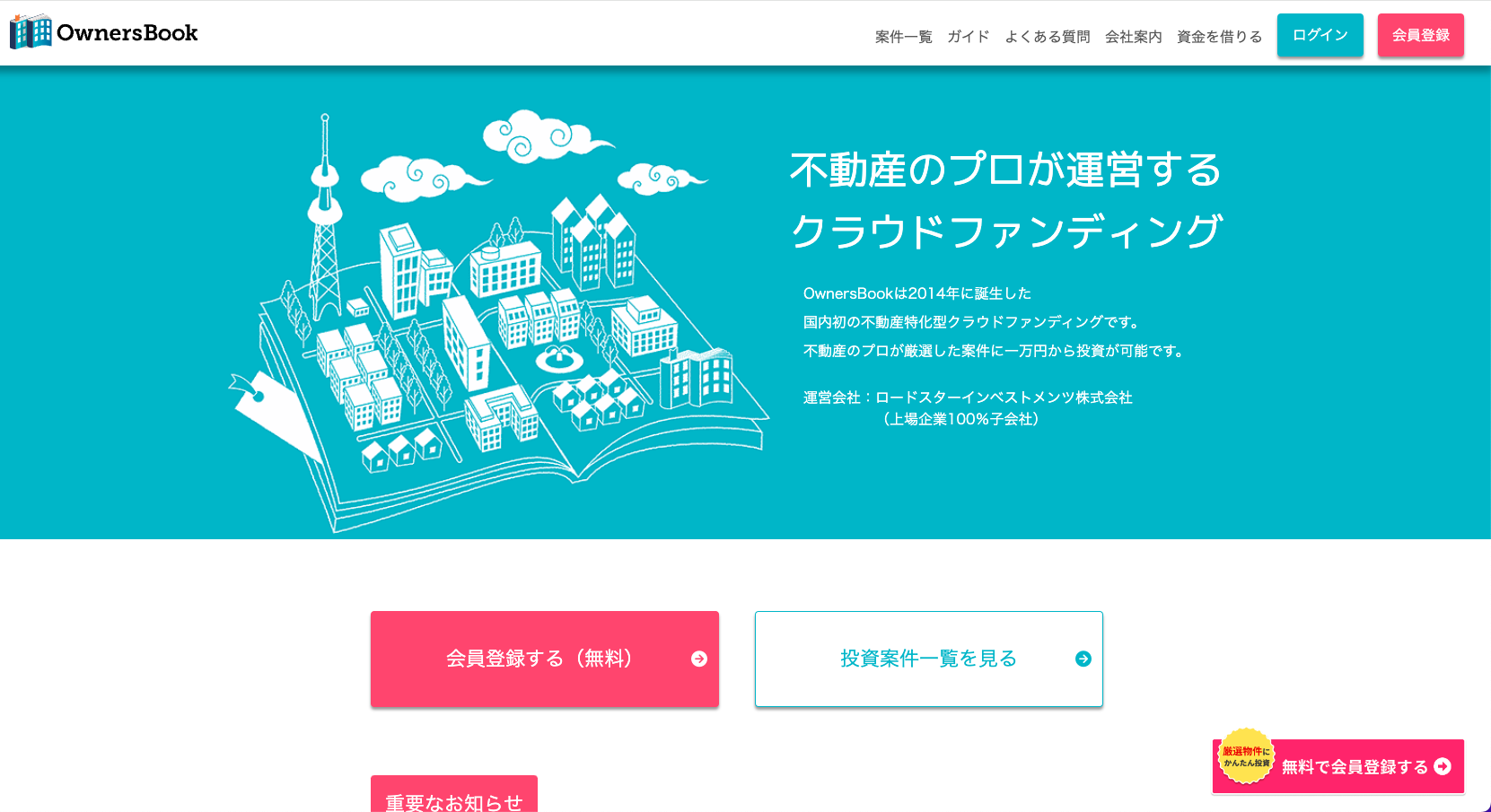 そんな中、少額からでも不動産投資を始められるとして人気を集めているのが、不動産クラウドファンディングサービスの「OwnersBook」(オーナーズブック)です。