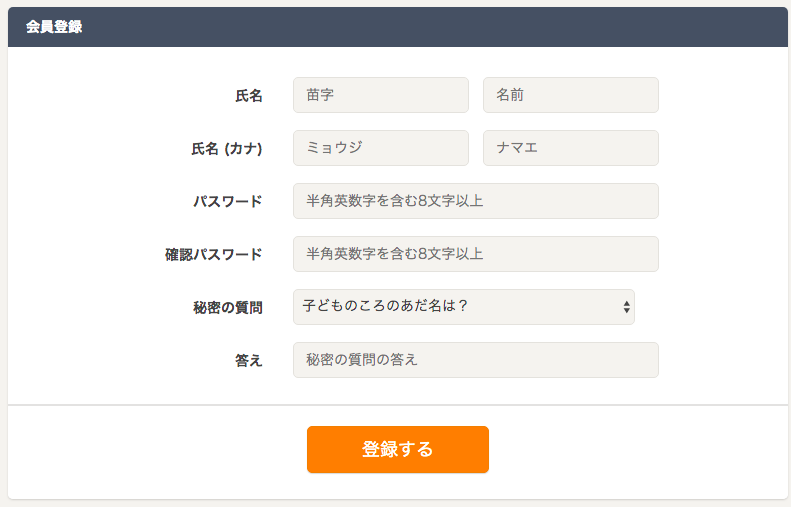 3.氏名やパスワードを入力し、「登録する」をクリックします