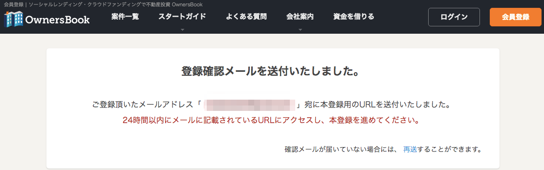 4.下記の画面になったら、メールの受信箱を確認し送られきたメールのURLをクリック