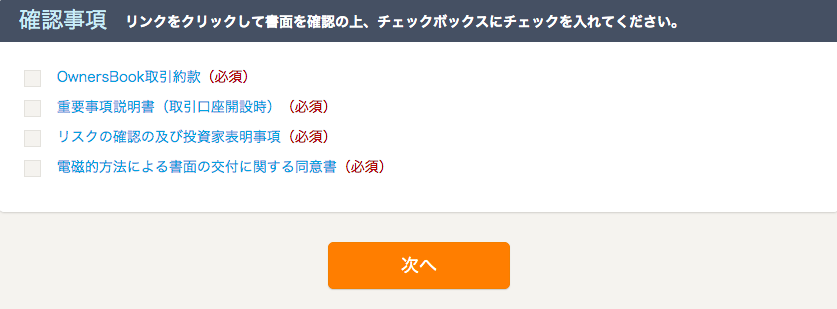 これまでの投資経験や同意事項のチェックなどがありますが、順番通りに作業していけば問題ありません。