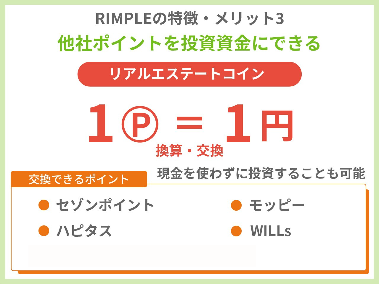 Rimpleは、1万円からの少額投資が可能な不動産クラウドファンディングであり、他社ポイントをリアルエステートコインに変えることができるなど様々なメリットがあります。