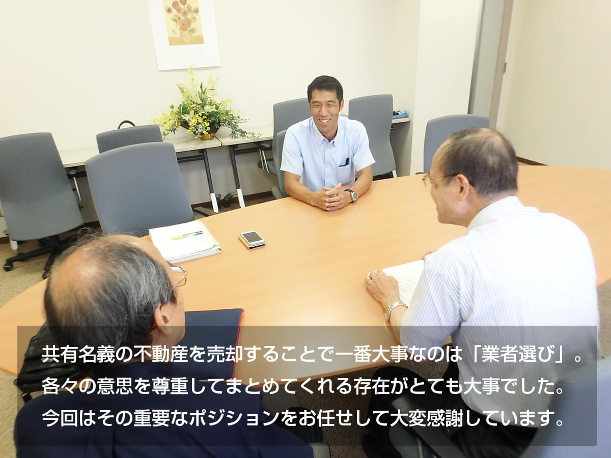売却を任せていただいている以上、売主様である皆様の気持ちが、シンプルに「売りたい」という気持ちが共通していれば、そのプロセスや解決方法を提案し、皆様の思いをまとめることが重要だと考えて行動しております。